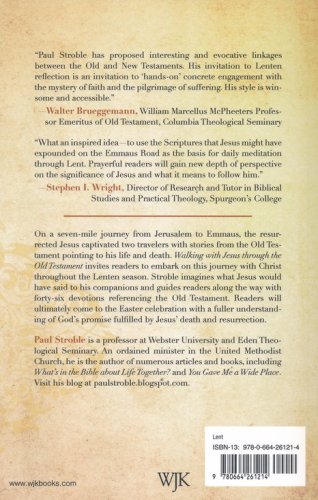 On a seven mile journey from Jerusalem to Emmaus, the resurrected Jesus captivated two travelers with stories from the Old Testament pointing to his life and death. Walking with Jesus through the Old Testament invites readers to embark on this journey with Christ throughout the Lenten season. Stroble imagines what Jesus would have said to his companions and guides readers along the way with forty-six devotions referencing the Old Testament. A prayer and a set of “digging deeper� activities are also included to help readers engage with each reflection on a personal level. Readers will ultimately come to the Easter celebration with a fuller understanding of God's promise fulfilled by Jesus' death and resurrection.