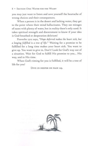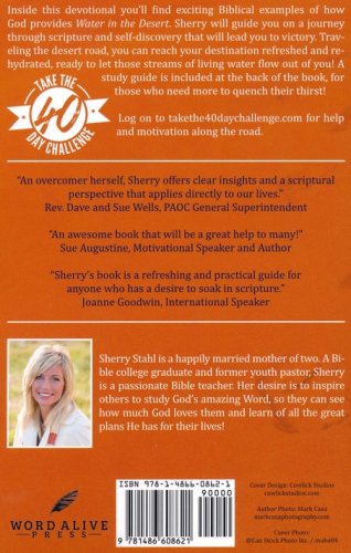 Inside this devotional youll find exciting Biblical examples of how God provides Water in the Desert. Sherry will guide you on a journey through scripture and self-discovery that will lead you to victory. Traveling the desert road, you can reach your destination refreshed and rehydrated, ready to let those streams of living water flow out of you! A study guide is included at the back of the book, for those who need more to quench their thirst: great for personal or group study!