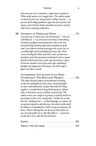 Gatto demonstrates that the harm school inflicts is rational and deliberate. The real function of pedagogy, he argues, is to render the common population manageable. To that end, young people must be conditioned to rely upon experts, to remain divided from natural alliances, and to accept disconnections from their own lived experiences. They must at all costs be discouraged from developing self-reliance and independence.