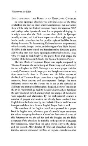 New Episcopalians may be nervous about opening the Bible; others simply don't know how to begin. An often-overlooked gift of the Episcopal Church is that the texts and doctrines of the Bible are embedded in its prayers, liturgies, and creeds. Making that knowledge explicit and placing it in context can open the way for further and more in-depth study.