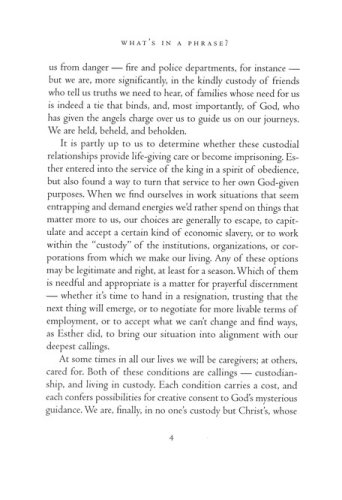 Well-known biblical phrases — "in the fullness of time," "fearfully and wonderfully made," "in the beauty of holiness," and others — suggest and evoke and invite. In this book Marilyn Chandler McEntyre offers brief reflections on more than fifty such scriptural phrases that prompt readers to pay attention, to pause where we sense a beckoning.