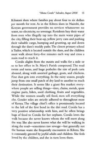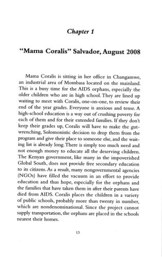 Slavin first met Salvador when she was volunteering as a lawyer working in a justice and peace program in Kenya. Slavin was intrigued by the well-known phrase "Blessed are the poor." After approaching this seeming paradox through unrewarding library research, she decided that she would join Salvador in her ministry to AIDS orphans to try to understand how the poor can be "blessed." This account tells of their experiences as they worked together with the poor, primarily AIDS orphans, in the slums of Kenya.