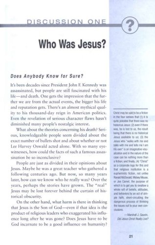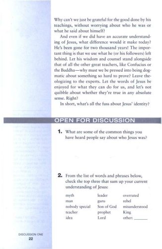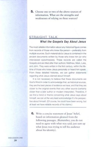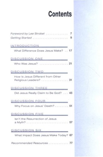 This revised edition of Tough Questions, designed for use in any small group setting, is ideal for use in seeker small groups. Based on more than five years of field-tested feedback, extensive improvements make this best-selling series easier to use and more appealing than ever for both participants and group leaders. The Tough Questions SeriesHow can an all-powerful God allow suffering? Is Jesus really the only way to God? Why should I trust the Bible?Tough questions. Reasonable questions. The kinds of challenging questions you, or someone you know may be asking, that are worth taking time to explore.In six sessions designed to get small groups thinking and interacting, each guide in the Tough Questions series deals frankly with objections commonly raised about Christianity. You’ll engage in the kind of spirited dialog that shows the Christian faith can stand up to scrutiny. WHAT DIFFERENCE DOES JESUS MAKE?Who Was Jesus?How Is Jesus Different from Other Religious Leaders?Did Jesus Really Claim to Be God?Why Focus on Jesus’ Death?Isn’t the Resurrection of Jesus a Myth?What Difference Does Jesus Make Today?
