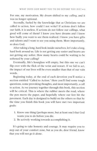 These 30 devotions are designed to help you discover at least one thing God wants you to do before you die and launch you toward accomplishing it.