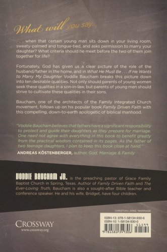 Guides parents in evaluating young men seeking their daughter's hand, assists young women in understanding the only kind of man they should consider marrying, and teaches young men how to grow in biblical manhood.