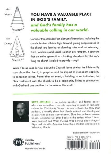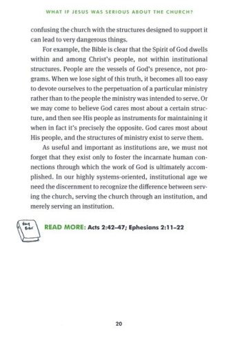 Researchers have uncovered the following three trends: First, distrust of institutions, including the church, is at an all-time high. Second, young people raised in the church are leaving at alarming rates and not returning. Third, loneliness and social isolation are at pandemic levels. What’s the connection? It appears that an entire generation is starving for the very thing the church is called to provide but has chosen to look for it elsewhere. Why is this happening? Following the model set by What If Jesus Was Serious?—short readings and engaging illustrations—What If Jesus Was Serious about the Church? looks at what the Bible really says about the church, its purpose, and the impact of its modern captivity to consumer values. Rather than an event, a building, or an institution, the New Testament calls the church to be a community living in communion with God and one another for the sake of the world.