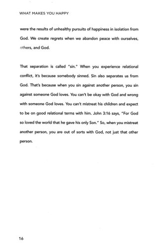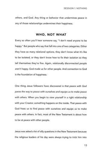 In this six-session video Bible study (DVD/digital video sold separately), pastor Andy Stanley examines the ways in which we tend to define happiness and explains how that definition influences the way we pursue it. He reveals that happiness is about who, not what, and that happy people are at peace with God, with others, and with themselves. He also shows how sin undermines peace because it separates us from God, others, and ourselves by substituting pleasure for fulfillment, things for people, images for intimacy, and self-expression for self-control.