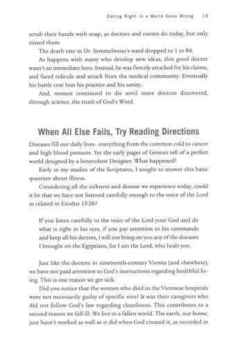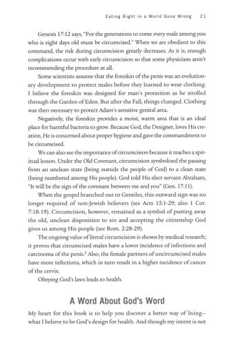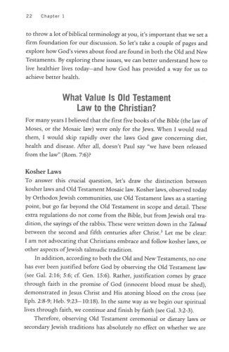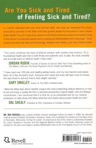 In a world infatuated with junk food and fad diets, why have we overlooked the simple instructions provided in the Bible that have guided people for thousands of years toward better health? You don't have to be Jewish or Christian to find wisdom for healthier living in this doctor's scripturally based book on eating and feeling better, and living longer. You'll learn the truth about grains and nuts, and the ins and outs of meat, fat, and sweeteners. Discover why beverages can be the elixirs of life or death. The principles here will help anyone who is sick and tired of feeling sick and tired find energy, freedom from illness, and more vibrant health.