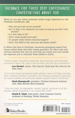 Paul Copan has been answering questions like these for many years. In When God Goes to Starbucks, he offers readers solid and caring Christian responses to these and many other concerns that are being discussed in Starbucks, shopping malls, youth groups, and schools. Each chapter provides succinct answers and points for countering the cultural questions believers are faced with today.