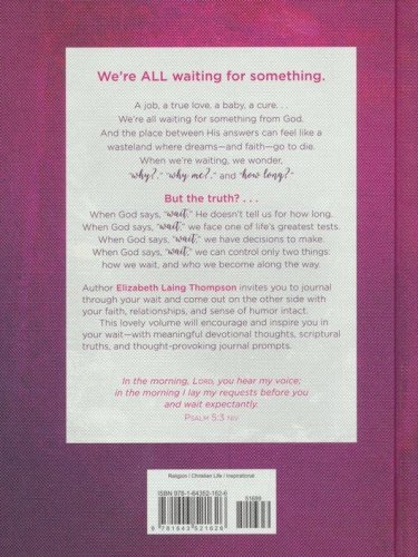 A beautiful, textured hardcover bindingDelightfully designed one-color interior with quality paperDozens of encouraging, inspiring thoughts from Elizabeth Laing Thompson's popular Christian living title When God Says, "Wait"Generous space to record personal thoughts and feelingsThought-provoking reflection questions and journal promptsScripture selections on every spread