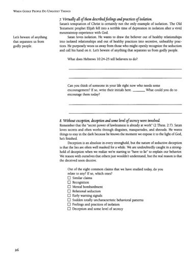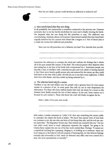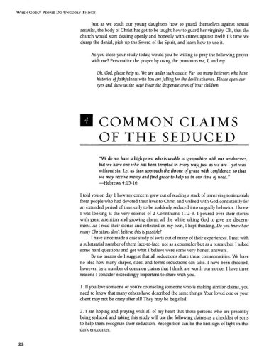 When Godly People Do Ungodly Things: Arming Yourself in the Age of Seduction – Bible Study Book by Beth Moore provides a personal study experience five days a week plus viewer guides for the group video sessions of this in-depth women's Bible study. In this biblical guide to authentic repentance and restoration Beth examines why devoted followers of Jesus Christ can fall into the traps of Satan.
