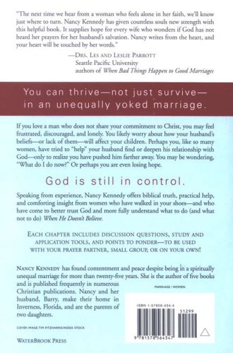 Speaking from experience, Nancy Kennedy offers biblical truth, practical help, and comforting insight from women who have walked in your shoes–and who have come to better trust God and more fully understand what to do (and what not to do) When He Doesn’t Believe.