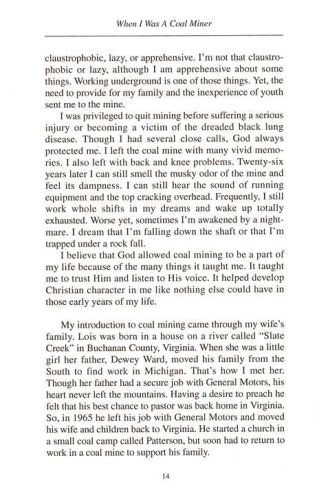Have you ever wondered what it would be like to work in a coal mine? This is a true story about a young man from Michigan who became the pastor of a small church in Coalwood, West Virginia. In order to support his family, he worked underground in a deep coal mine. This book tells the story of life in a coal-mining community and presents an insider's view of a coal mine. It will inspire you to trust God through difficult times in your life.