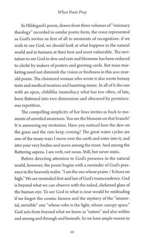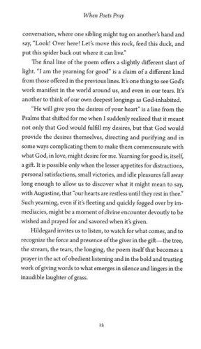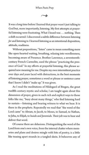 When Poets Pray contains thoughtful meditations by Marilyn McEntyre on choice poems/prayers and poems about prayer. Her beautifully written reflections are contemplative exercises, not scholarly analyses, meant more as invitation than instruc¬tion. Here McEntyre shares gifts that she herself has received from poets who pray, or who reflect on prayer, believing that they have other gifts to offer readers seeking spiritual companionship along our pilgrim way.