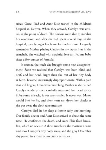 Revised and updated, this twentieth-anniversary edition features prayers and scripture meditation, as well as a new introduction and epilogue. Simple, profound, personal, compassionate … When You Lose Someone You Love tenderly walks the grief-stricken through sorrow to peace and, eventually, renewed joy.