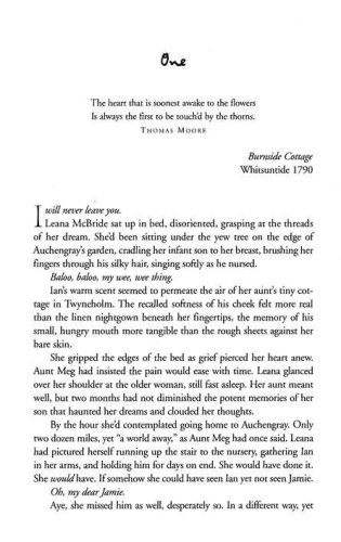 Jamie faces a perilous journey of the heart as well: Two sisters each stake a tender claim on his affections. Quiet, gentle Leana is the mother of his firstborn. Her spirited younger sister, Rose, is expecting his second child. Honor and duty prevail but not without heartache, as Jamie prepares to fight for all he holds dear.