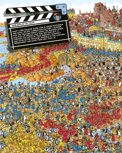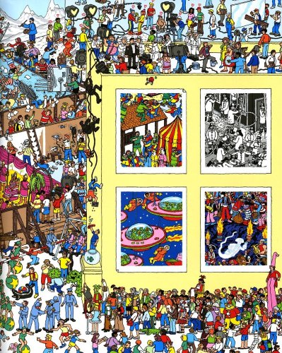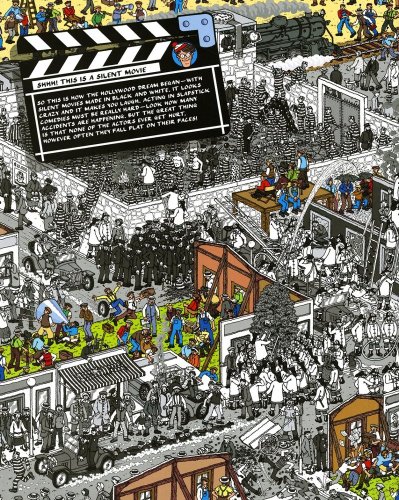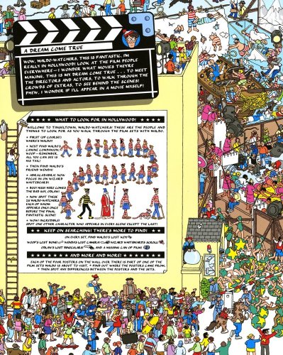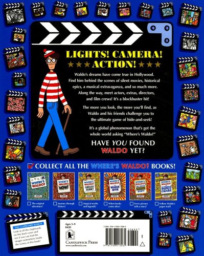 Hey, Waldo fans! Sharpen your eyes and your wits, because Waldo is taking you on a whole new star-studded adventure. That's right, you're going to Hollywood! Follow Waldo—if you can find him—through a cast of thousands on the bustling streets of the great movie classics. Is he there in the chorus line of that musical in production, or up on the ramparts of that epic war film? Or is our elusive, bespectacled hero right in the middle of the swashbuckling escapades of the Three Musketeers? Waldo and all his lost objects are harder to find than ever in this hilarious new challenge for eager Waldo-hunters everywhere!