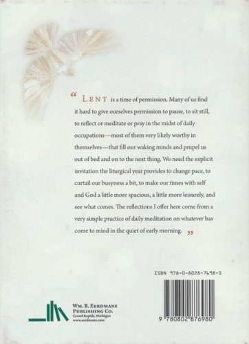 "Lent is a time of permission," says McEntyre. "Many of us find it hard to give ourselves permission to pause, to sit still, to reflect or meditate or pray in the midst of daily occupations—most of them very likely worthy in themselves—that fill our waking minds and propel us out of bed and on to the next thing. We need the explicit invitation the liturgical year provides to change pace, to curtail our busyness a bit, to make our times with self and God a little more spacious, a little more leisurely, and see what comes. The reflections I offer here come from a very simple practice of daily meditation on whatever has come to mind in the quiet of early morning."