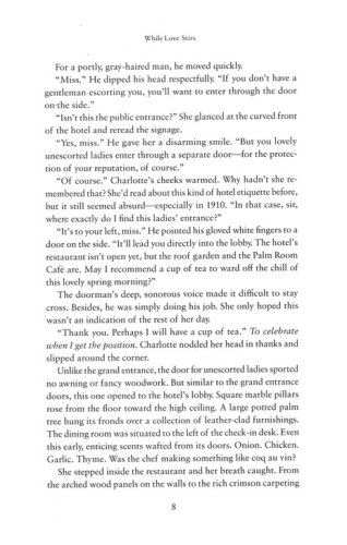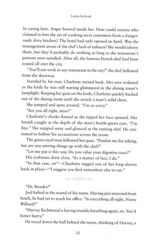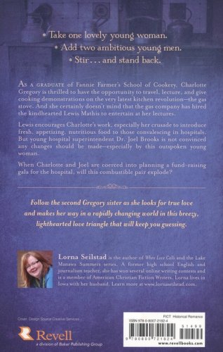 After graduating from Fannie Farmer's School of Cookery in 1910, Charlotte Gregory is ready to stir things up. She is thrilled to have the opportunity to travel, lecture, and give cooking demonstrations on the very latest kitchen revolution–the gas stove–and certainly doesn't mind that the gas company has hired the handsome Lewis Mathis to perform at her lectures. Lewis encourages her work, especially her crusade to introduce fresh, appetizing, nutritious food to those convalescing in hospitals. But young hospital superintendent Dr. Joel Brooks is not convinced any changes should be made–especially by this outspoken young woman.