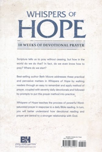 Best-selling author Beth Moore addresses these practical and pervasive matters in Whispers of Hope by walking readers through an easy to remember and apply method of prayer, coupled with seventy daily devotionals and followed by prompts to put this prayer method into practice.