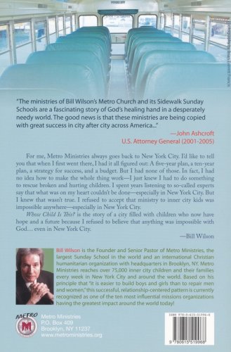 An abandoned child himself, Bill Wilson has touched the lives of many inner city children through Metro Ministries, which he founded in 1980. In Whose Child Is This?, he shares some of his struggles and victories and his determination to make a difference inthe life of a child. He encourages readers to do their part in rescuing hurting and broken children, and believe that anything is possible with God.