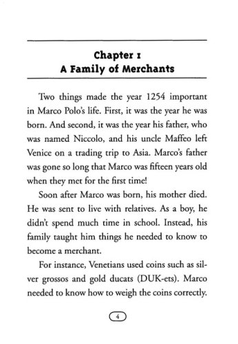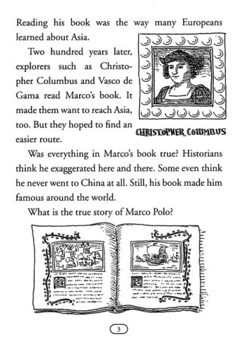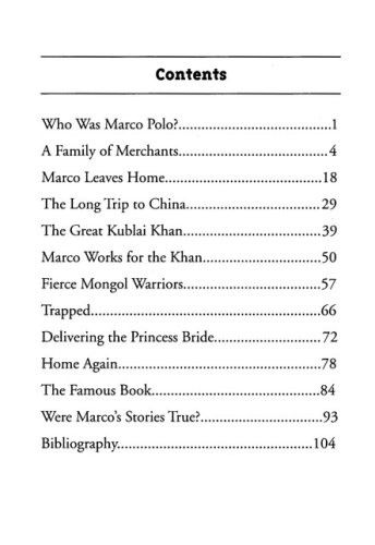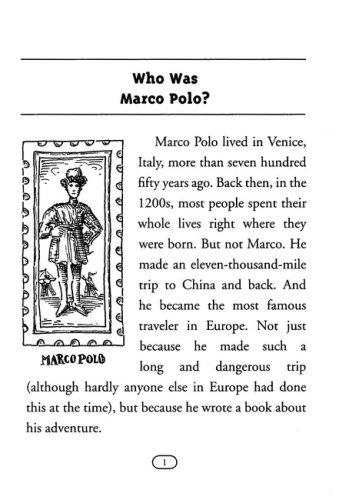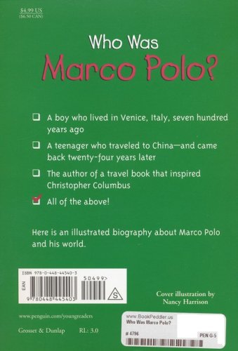 Marco Polo was seventeen when he set out for China . . . and forty-one when he came back! More than seven hundred years ago, Marco Polo traveled from the medieval city of Venice to the fabled kingdom of the great Kublai Khan, seeing new sights and riches that no Westerner had ever before witnessed. But did Marco Polo experience the things he wrote about . . . or was it all made-up? Young readers are presented with the facts in this entertaining, highly readable Who Was . . . ? biography with black-and-white artwork by John O?Brien.