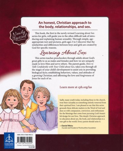 This book, the first in the newly revised Learning About Sex series for girls, will guide you in the often difficult task of introducing and explaining human sexuality. Through simple, age-appropriate text and pictures, girls ages 3 to 5 discover that the similarities and differences between boys and girls are created by God for specific reasons.