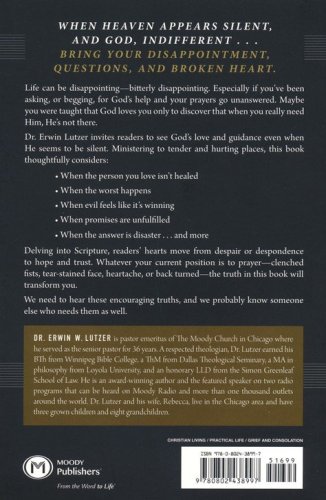 As Lutzer delves into Scripture and reveals God's hidden purposes, readers’ hearts move from despair or despondence to hope and trust. Whatever your current position is to prayer—clenched fists, tear-stained face, heartache, or back turned—the truth of this book will transform you.