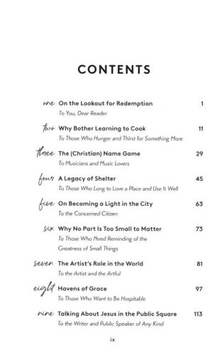Thought-provoking explorations into the many facets of Christian culture care and making, from the kitchen to Carnegie Hall.Practical guidance for how to care for and improve the quality of human life, locally and globally, no matter your vocation.A theology of imagination and creativity that provides a framework for all of life.A model for expressing love in marriage, friendship, citizenship, and every kind of work-even in the midst of cynicism, fear, exhaustion, and oppression.