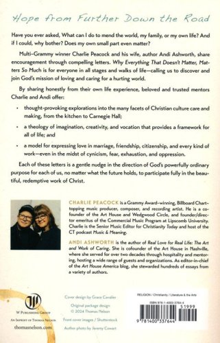 Do you feel powerless and overwhelmed by the pain and suffering all around you? Have you ever asked, What can I do to mend the world, my family, or my own life? And if I could, why bother? Does my own small part even matter? If so, here comes hope from two guides who are further down the road. Charlie and Andi have written a collection of letters to Christians and spiritual seekers who think deeply and care acutely about the state of the world and their personal spheres of influence.