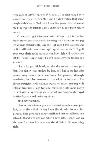 In this unique combination of personal history, interviews, and social science, a young millennial shares surprising reasons that youthful rebellion isn’t inevitable and points the way for raising healthy, grounded children who love God.