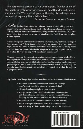 Millions of believers are hungry for an uncompromising look at the roles of women in missions, ministry, and leadership. This book brings light, not just more heat, to the church's crucial debate through- historical and current global perspectives- a detailed study of women in Scripture- an examination of the fruit of women in public ministry- a powerful revelation of what's at stake for women, men, the body of Christ, God's kingdom, and the unreached