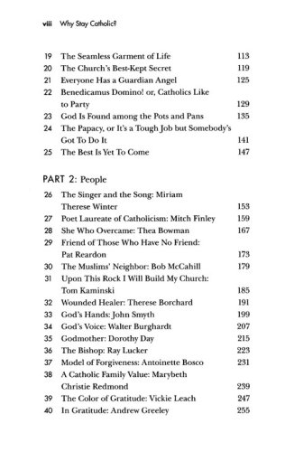 This book is not theology lite, it is spirituality with spine. It is about the beauty at the heart of Catholicism. While many authors wax nostalgic about the way things used to be in the Church, Why Stay Catholic signs with one unique voice, backed up by a chorus of original voices of all ages and from all times.