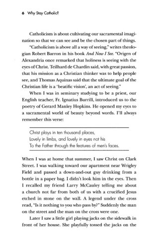 Why Stay Catholic? answers the question Why Be Catholic? and is about the things that last because they are spiritual. As such, the book is really an invitation to "taste and see how good the Lord is." Cradle Catholics, recovering Catholics, ex-Catholics, and even non-Catholics will love this healing antidote to a faltering faith and a wounded Church.