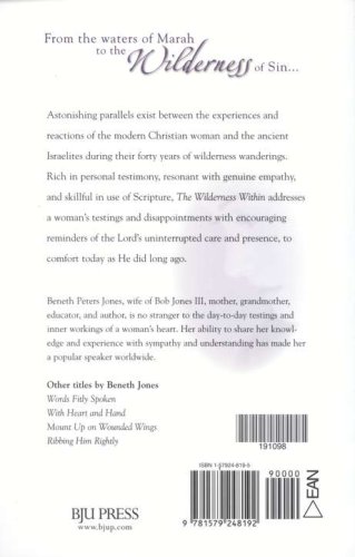 In a touching work of non-fiction, Beneth Peter Jones explores the forty-year wanderings of the Israelites and compares this to a woman’s inner struggles with emotions and attitudes. The reader will be encouraged that God still guides us through our wildernesses just like He did in ancient times.