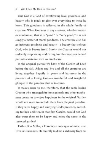 What do you think: Will we see our dogs and cats in the hereafter? Does God's plan for eternity include the created nonhuman world? Franciscan friar and popular writer Father Jack Wintz brings a love for all creation and infectious enthusiasm to the serious task of exploring answers to these long-asked questions,