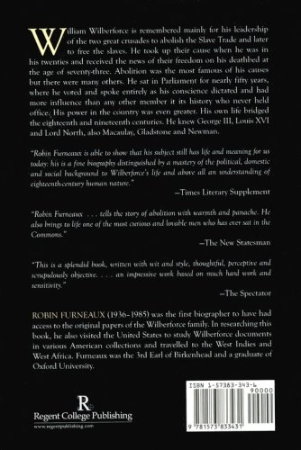 William Wilberforce is now remembered mainly for his leadership of the two great crusades to abolish the Slave Trade and later to free the slaves. He took up their cause when he was in his twenties and received the news of their freedom on his deathbed at the age of seventy-three. Abolition was the most famous of his causes but there were many others. He sat in Parliament for nearly fifty years, where he voted and spoke entirely as his conscience dictated and had more influence than any other member it its history who never held office. His power in the country was even greater. His own life bridged the eighteenth and nineteenth centuries. He knew George III, Louis XVI and Lord North, also Macaulay, Gladstone and Newman. Robin Furneaux (1936-1985) was the first biographer to have had access to the Wilberforce papers. He also visited the United States to study Wilberforce documents in various American collections and travelled in the West Indies and West Africa. Furneaux was 3rd Earl of Birkenhead and took an Honours Degree in history at Oxford.