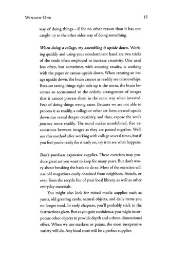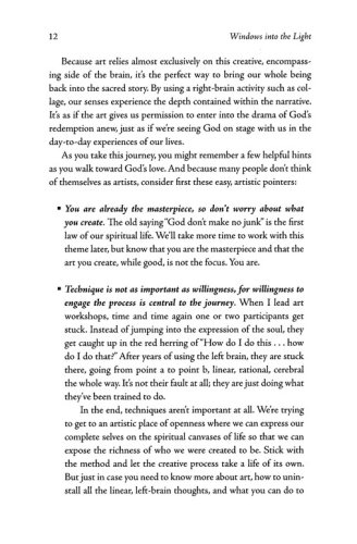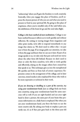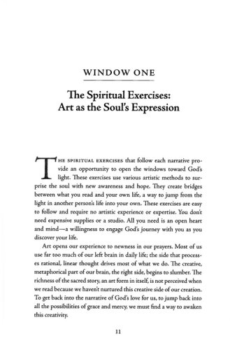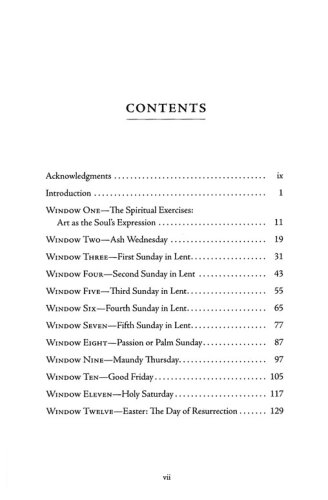 Organized around holy days and Sundays in Lent, chapters begin with a prayer or poetic excerpt, followed by scripture for the day or week. A narrative then expands on the themes introduced by the prayer and scripture. Exercises following the narratives are simple—mostly collage exercises using differing techniques—and are accessible to a wide audience. Soul Questions, popular with readers, guide the spiritual exercise following the narrative, and Thoughts for the Journey, also popular with Windows readers, complete each chapter with suggestions for further reflection.