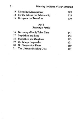 "I've got the love to give. Now how can I get my stepchild to accept it?" Does that question sound familiar? Whether you are presently a stepparent, a dating single parent, or in the courtship stage before marriage, the challenge of blending families is one of the most difficulty you will ever face. Winning the Heart of Your Stepchild is a hands-on guidebook for today's men and women who face the special challenge of blending families. Because children must process so many emotions and thoughts — guilt over the divorce, unrealistic expectations, a sense of panic or fear — parents must learn to interpret those feelings and behaviors for any new family to succeed. This book shows how to – create an open atmosphere in the home – give reassuring answers to a child's questions – become a strong team with your new spouse – deal with the inevitable challenge to a new authority figure – build a foundation of love, understanding, and personal discipline that will make your new family special. Winning the Heart of Your Stepchild provides an indispensable road map for new moms and dads who want one vibrant, happy, blended family.