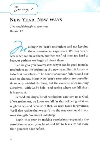 a durable leathersoft covergilded edges and round cornersa presentation page–perfect for giftinga designated section to write down your devotional thoughts and takeawaysgold stamping of the title, Billy Graham's signature, and a ribbon marker