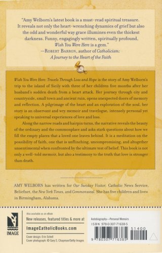 "Wish You Were Here: Travels Through Loss and Hope" is the story of Amy Welborn's trip to the island of Sicily with three of her children five months after her husband's sudden death from a heart attack. Her journey through city and countryside, small town and ancient ruins, opens unexpected doors of memory and reflection, a pilgrimage of the heart and an exploration of the soul. It is an observant and wry memoir and travelogue, intensely personal yet speaking to universal experiences of love and loss.