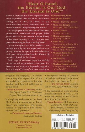 The Sh'ma is the central confession of monotheistic faith in Judaism. This brilliant new survey examines how it has been understood by historical giants: Moses, Akiba ben Joseph, Saadia Gaon, Moses Maimonides, Haim Vital, Moses Haim Luzzato, Abraham Isaac Kook, Leo Baeck, and Abraham Heschel. 140 pages, hardcover. Jewish Lights.