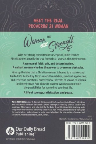 Learn what Proverbs 31 has to say for women and men. This chapter in Scripture has long been used to raise the bar for women to work harder, smarter, faster, to be more and do more. To which women have responded with determination, grit . . . and exhaustion. Is that what God intended? With Bible teacher Alice Mathews's sound exegesis, you will unpack a better interpretation of the Proverbs 31 Woman–the Woman of Strength. Through careful translation, practical application, and reflection questions, you will discover what Proverbs 31 reveals about women, about men, and about God himself.