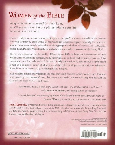 As you immerse yourself in their lives, you’ll see more and more places where your life intersects with theirs.Focus on fifty-two female heroes in Scripture, and you’ll discover yourself in the process. Women of the Bible: 52 Studies for Individuals and Groups is designed especially for those who want to delve more deeply, either alone or in a group, into the lives of women like Ruth, Anna, Esther, Leah, Rachel, Mary, Elizabeth, and other women who encountered the living God.This study edition of the best-seller Women of the Bible, includes an introduction to each woman, major Scripture passages, study materials, and cultural backgrounds. There are fifty-two studies, one for each week of the year. Newly gathered study aids include helpful charts as well as a complete listing of all women of the Bible, with pertinent Scripture references. Space is included to record your thoughts and insights.Each timeless biblical story mirrors the challenges and changes today’s women face. Through understanding these women’s lives, this easy-to-use study resource will help you discover the God behind their stories—and yours.
