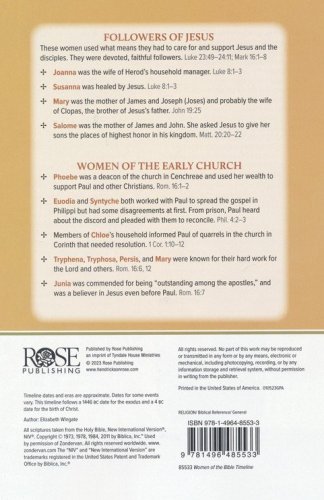 There are dozens of key women of the Bible to remember, but it can be difficult to keep track of who is who and which women lived in which era. Now you can get a solid overview using this handy foldout timeline which features more than 100 women from the Old and New Testaments alongside dozens of key biblical events. This stunning timeline is packed with:Brief summaries with key informationColorful illustrationsScripture referencesKey events and time periods in Bible historyPerfect for classrooms, study reference use, and as gifts for friends!