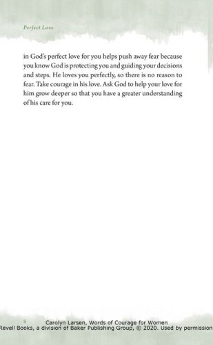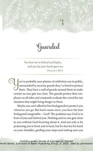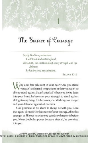 Compact and concise, Carolyn Larsen's Words of Courage for Women and Words of Peace for Women each offer you 90 inspiring devotional readings that will help you remember God's presence in your days and see your world from a positive perspective. These short, to-the-point readings illuminate God's promises and show you just how they apply to your everyday life. Beautifully designed, these devotionals are the perfect gift for a friend–and for yourself.