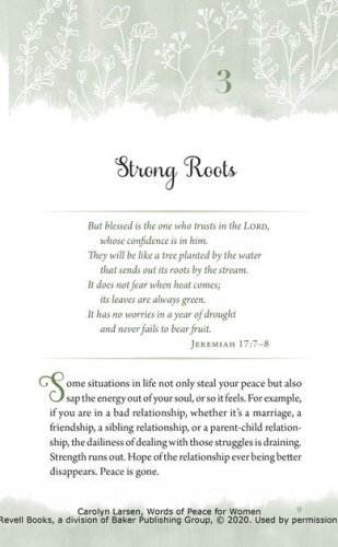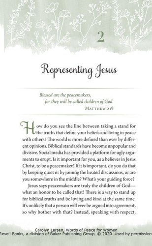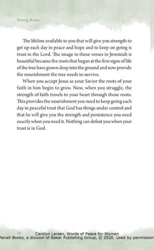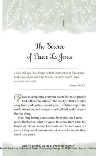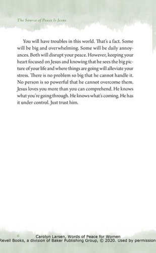 Compact and concise, Carolyn Larsen's Words of Courage for Women and Words of Peace for Women each offer you 90 inspiring devotional readings that will help you remember God's presence in your days and see your world from a positive perspective. These short, to-the-point readings illuminate God's promises and show you just how they apply to your everyday life. Beautifully designed, these devotionals are the perfect gift for a friend–and for yourself.