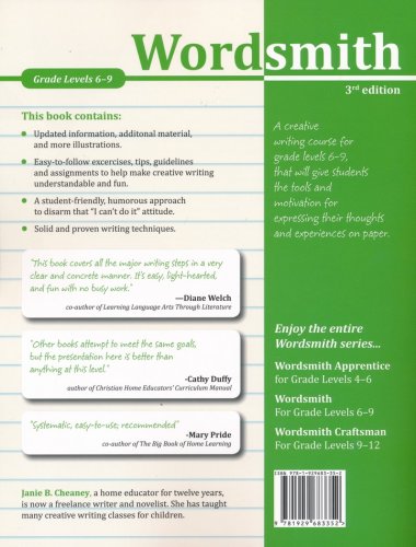 Kids coming into college and even high school often struggle with their writing skills and ability. Stand against the current with targeted writing exercises that are enjoyable and effective! Wordsmith's creative writing course gives students solid instruction in writing-techniques, emphasizing building strong sentences, description, narrative, dialogue, and revising/proofreading. Humorous examples and integrated practices help kids to remember what they've just leaned and figure out how to apply it. This new Edition of Wordsmith includes more exercises, examples, and explanations, as well as review and practice quizzes. Grades 7-9. Some exercises may be completed in the book, but for others a notebook or additional paper will be necessary. 100 pages, softcover.