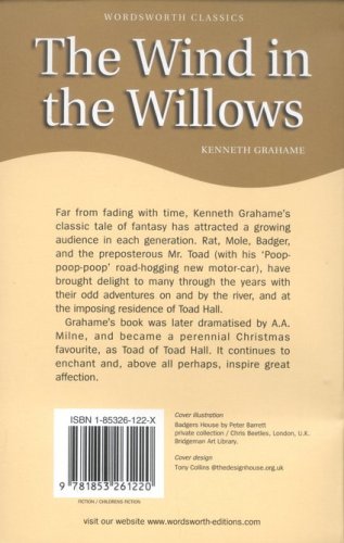 Far from fading with time, Kenneth Grahame's classic tale of fantasy has attracted a growing audience in each generation. Rat, Mole, Badger, and the preposterous Mr. Toad (with his 'Poop-poop-poop' road-hogging new motor car), have brought delight to many through the years with their odd adventures on and by the river, and at the imposing residence of Toad hall.