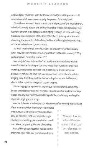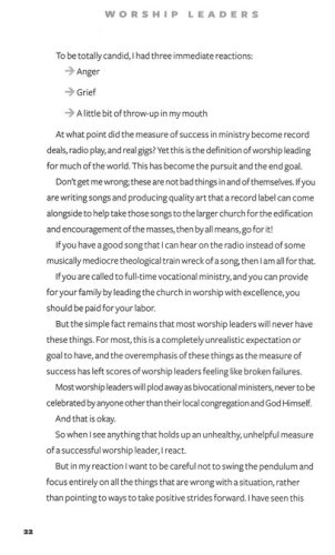 In this book, Miller exhorts his fellow worship leaders to make Jesus the center of all their efforts. He teaches how to do this with Scripture, teaching, prayer, story, and song. In all, Miller’s call for worship leaders is to lead worship, whole-hearted and whole-minded exalting of God, rather than making a spectacle out of it.